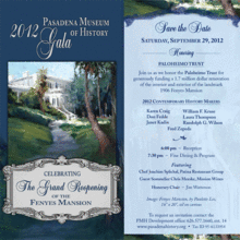 Electronic tributes will be projected during the gala. Your full color tribute may include photographs. For details, contact Emily Leiserson at 626.577.1660, ext. 26 or eleiserson@pasadenahistory.org