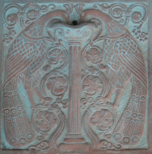 Image: The Vine and Peacocks Fountain Tile, Marked Batchelder, Los Angeles (Loan Courtesy of the Tile Heritage Foundation 1997.03.54 Gift of Ceramic Tile Institute)