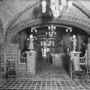 Tour locations include John A. Roebling's Sons Co Wire Works (1913) with its exquisite pocket lobby decorated with custom tiles that honor the Roebling family's commercial history, including the wire rope that spanned the Brooklyn Bridge; Batchelders largest interior commission, the Chocolate Shop (1914), a complete floor-to-ceiling environment with tiled groin vaulting, unique murals of Dutch vernacular scenes and a pair of lifelike sculpted children blowing bubbles of light; and the Romanesque Revival Fine Arts Building (1927), its double-height lobby entirely decorated with tiles, fixtures and figural elements drawn from the catalog of the now well-established tile merchant.