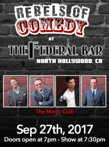 It's Rebels of Comedy at the Federal Bar in North Hollywood. Come out and see a night of live comedy, featuring an awesome lineup of professional features and headliner comedians.